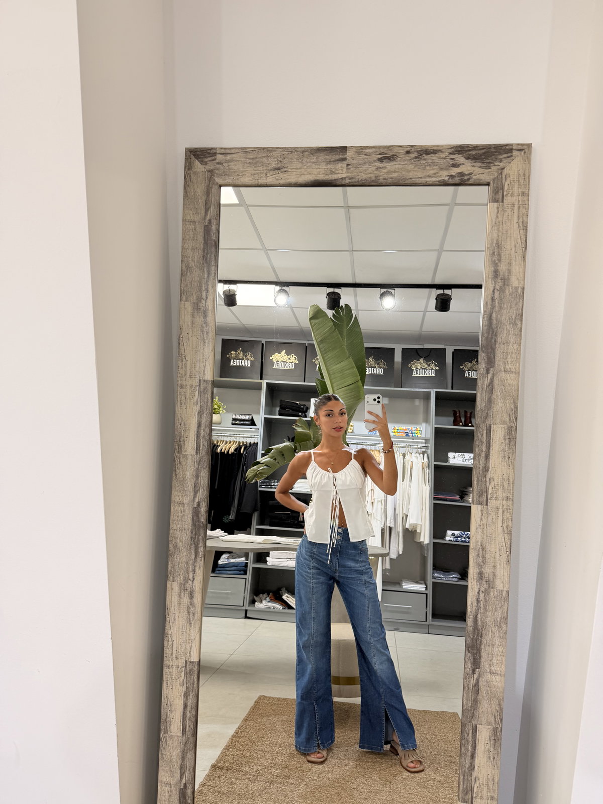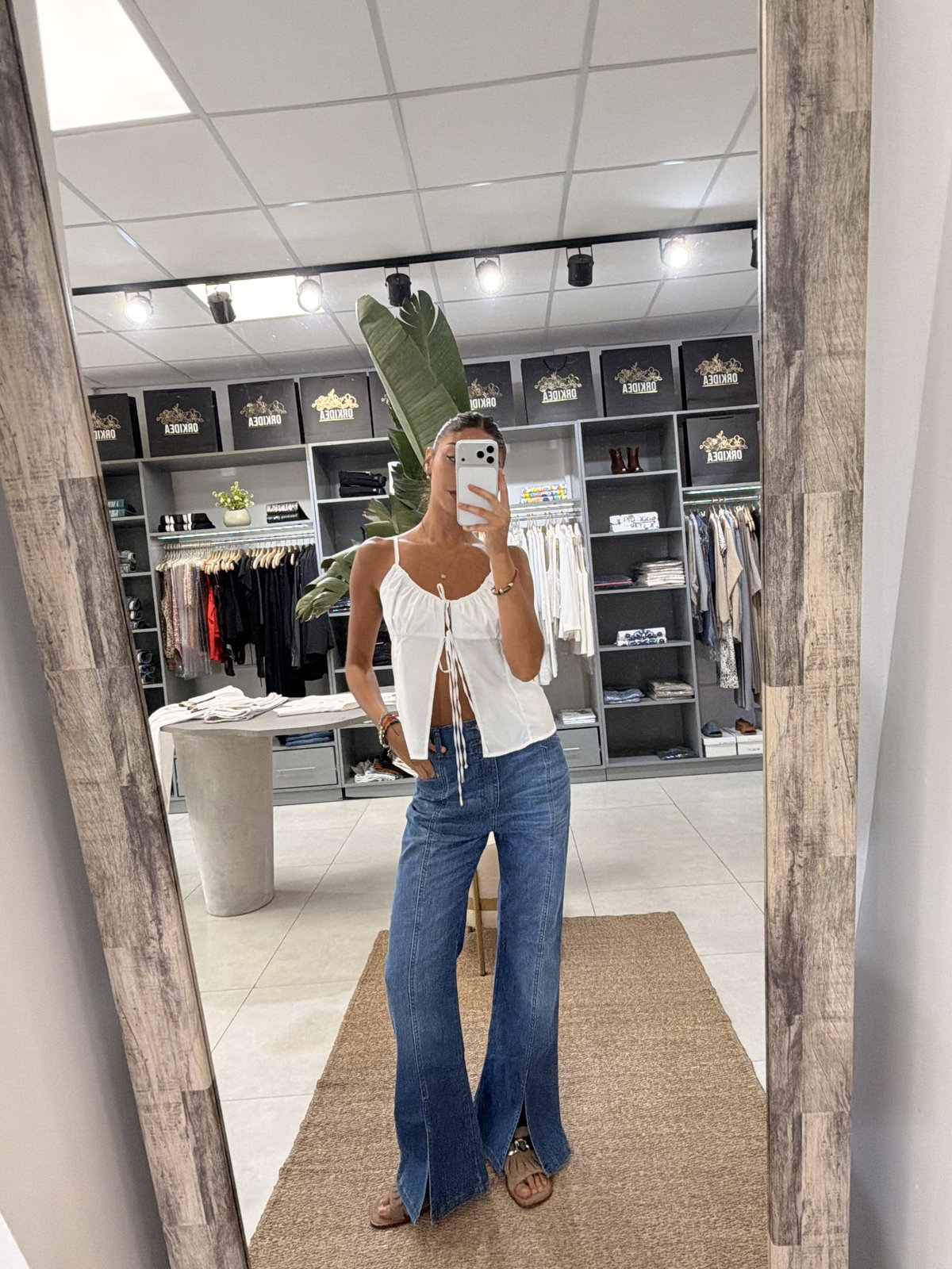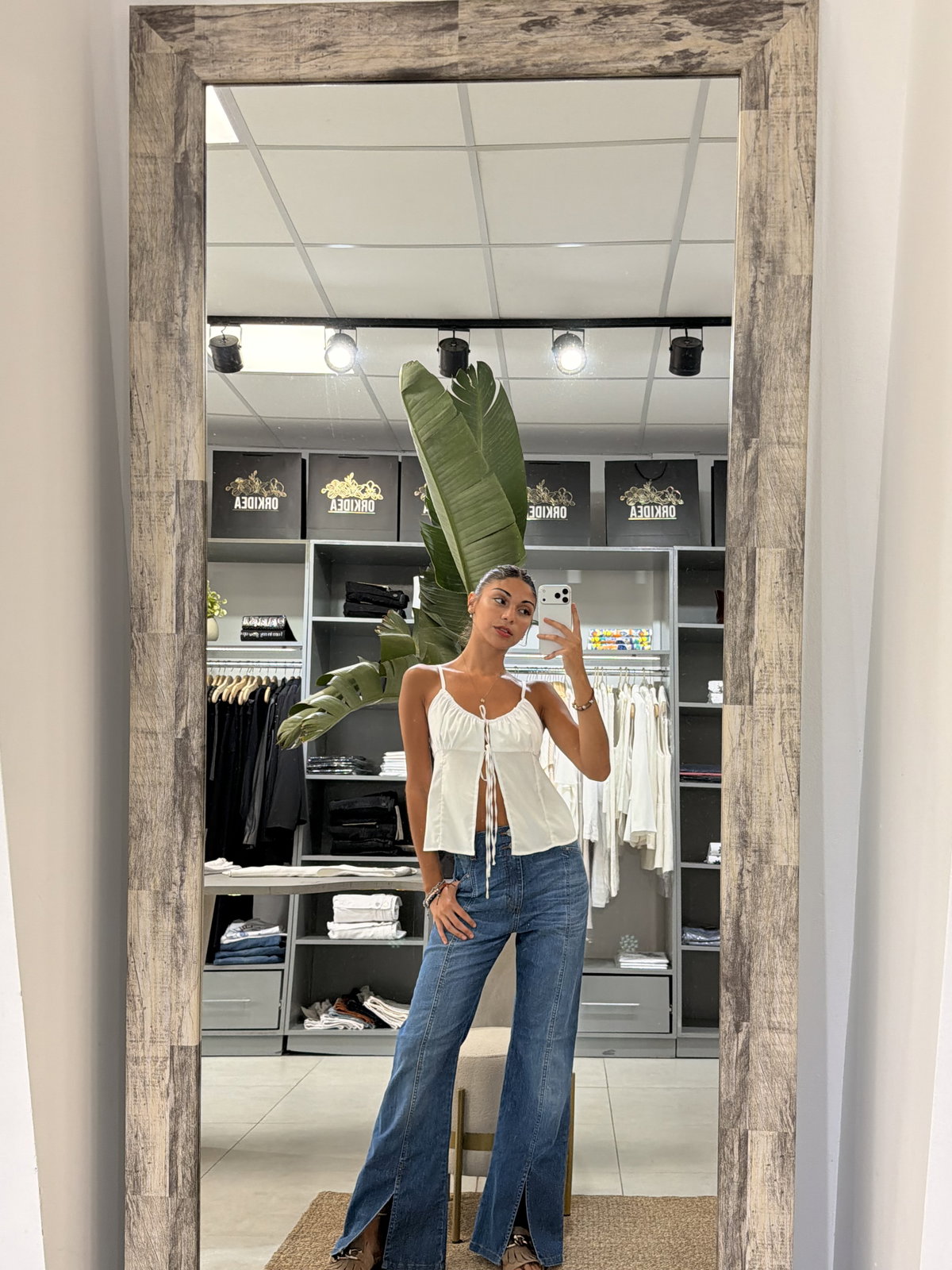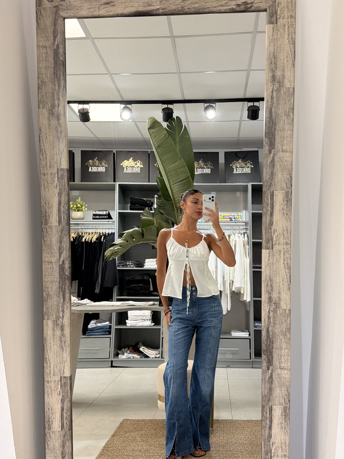 Jeans con tajo en bota y doble botón